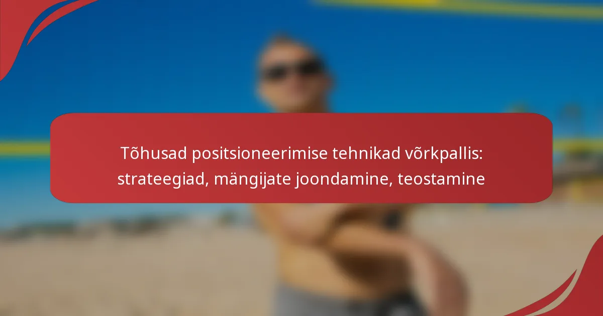 Tõhusad positsioneerimistehnikad võrkpallis on üliolulised mängijate soorituse maksimeerimiseks ja meeskonna eduks. Peamised praktikad hõlmavad õige paigutuse säilitamist, mängude etteaimamist ja liikumiste täpset teostamist, et tagada optimaalse katvuse saavutamine väljakul.