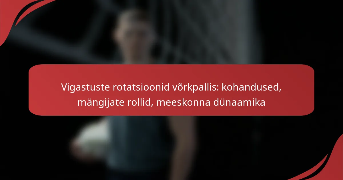 Võrkpallis vigastuste rotatsioonid hõlmavad strateegilisi kohandusi vigastatud mängijate arvestamiseks, võimaldades meeskondadel säilitada konkurentsivõime mängude ajal. Need rotatsioonid mõjutavad oluliselt meeskonna dünaamikat ja mängijate rolle, nõudes tõhusat suhtlemist ja kohanemisvõimet, et tagada esitusvõime kõrge tase hoolimata olulistest puudumistest.