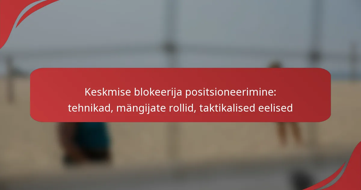 Keskmise blokeerija positsioneerimine tugineb tõhusale jalgade tööle, täpsele ajastusele ja vastase mängude lugemise oskusele. Nende tehnikate omandamine parandab mängija võimet blokeerida rünnakuid ja panustada meeskonna kaitsele.