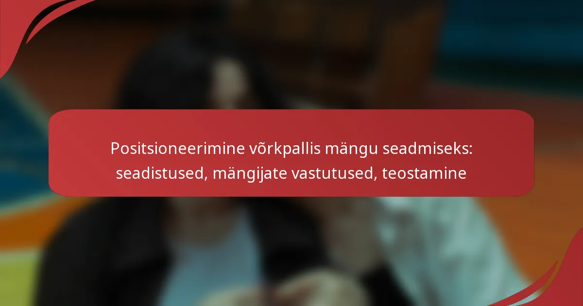 Võrkpallis on mängu seadistamine hädavajalik strateegia, mis parandab meeskonna sooritust, optimeerides mängijate positsioneerimist ja luues skoorimisvõimalusi. Tõhus teostamine sõltub selgetest mängijate vastutustest ja strateegilistest vormatsioonidest, mis kohanduvad mängu dünaamikaga. Nende elementide mõistmine on ülioluline, et maksimeerida seadistamise tõhusust ja ületada vastaseid.