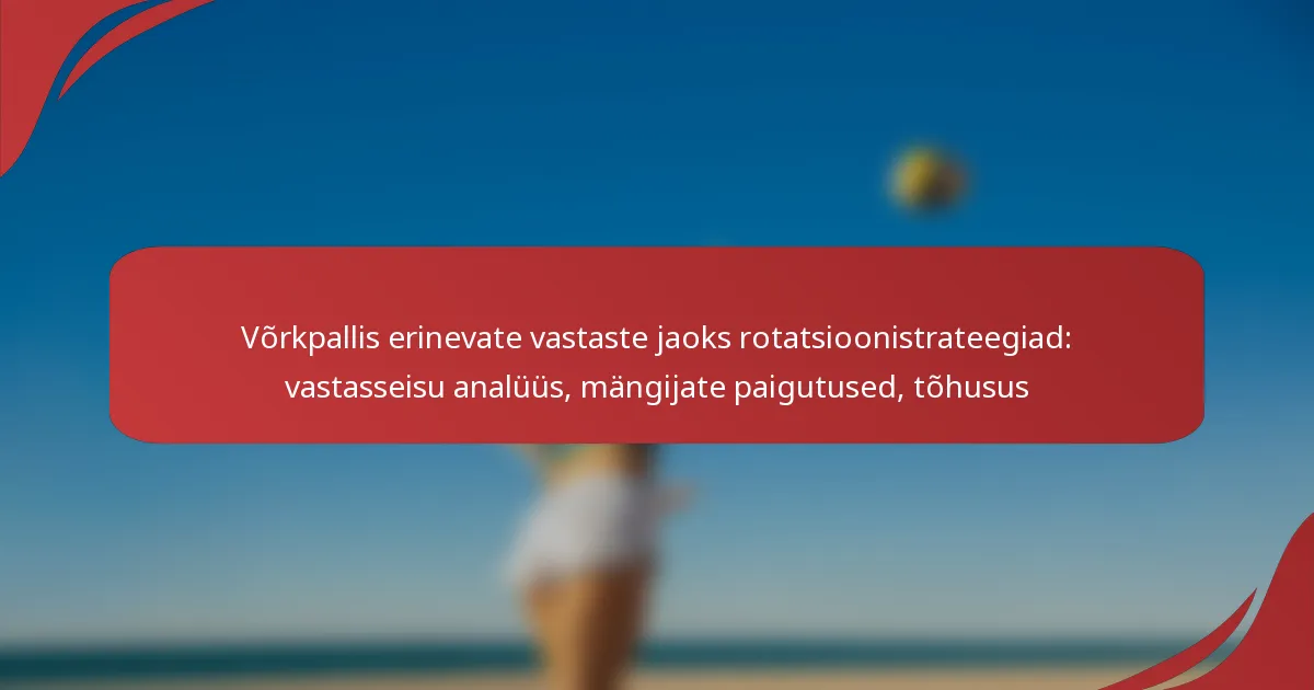 Võtme pöörlemisstrateegiad võrkpallis hõlmavad süsteemseid mängijate liikumisi, mis parandavad meeskonna sooritust erinevate vastaste vastu. Need strateegiad on suunatud mängijate paigutuse optimeerimisele, tugevuste ärakasutamisele ja vastaste nõrkuste ära kasutamisele mängude ajal.